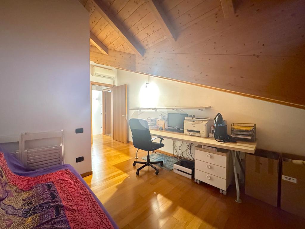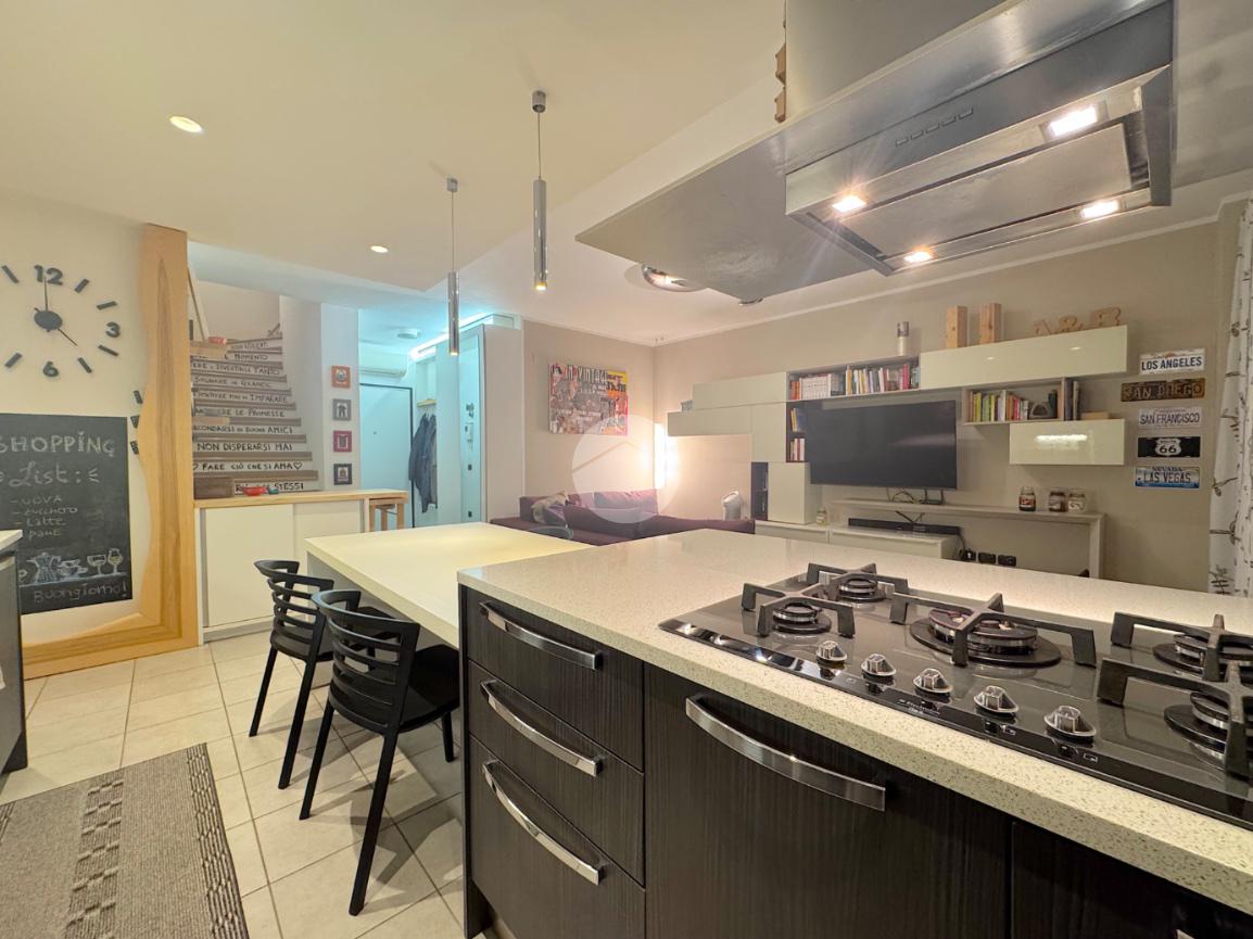 In contesto condominiale del 2012, situato in zona centrale ma tranquilla, proponiamo appartamento al primo ed ultimo piano su due livelli. La soluzione è composta da un ampio ingresso che porta ad una zona soggiorno-cottura open space di 30mq con doppio sfogo esterno, disimpegno ed ampio bagno finestrato con doccia. Al piano primo si trovano invece 3 camere da letto ed un secondo bagno finestrato con doccia. L'immobile è dotato di cappotto esterno, riscaldamento a pavimento ed è in classe energetica B. Ogni locale è dotato di aria condizionata.