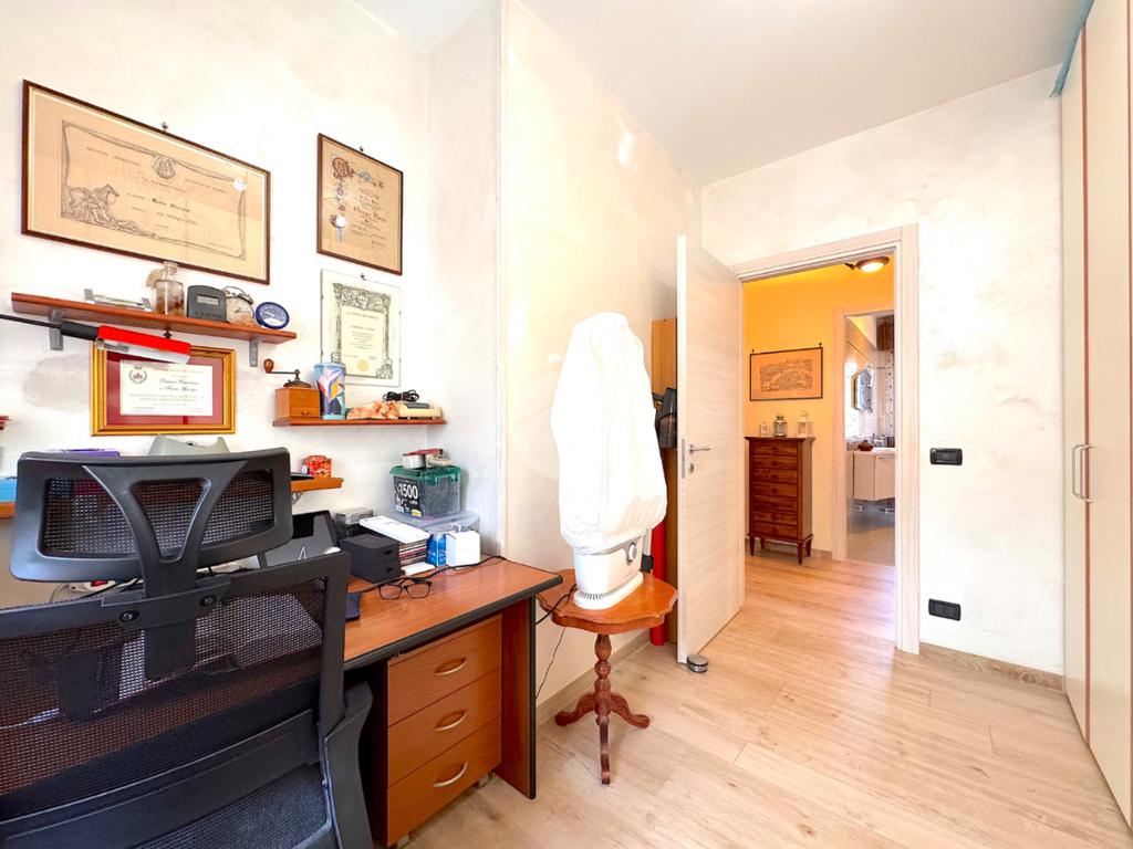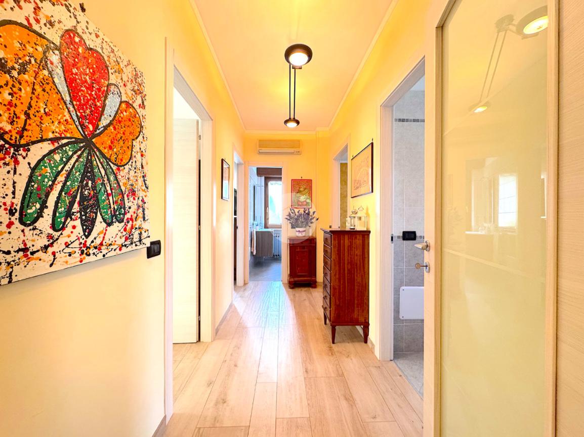 In contesto situato in una via chiusa e con sole 6 unità abitative, proponiamo appartamento ristrutturato al primo piano senza ascensore. La ristrutturazione, avvenuta nel 2016, ha incluso: impianto elettrico, impianto idraulico, pavimenti, porte interne, porta blindata, finestre, bagni, caldaia a condensazione. La soluzione si presenta in ottimo stato ed è composta da ingresso con ampio disimpegno e ripostiglio, soggiorno con balcone e cucina abitabile con ampio sfogo esterno. Tramite un corridoio ampio, si accede alla zona notte composta da 2 bagni finestrati con doccia, camera singola e 2 camere matrimoniali. Completano la proprietà un garage singolo, un posto auto, una cantina ed un piccolo pezzo di orto.