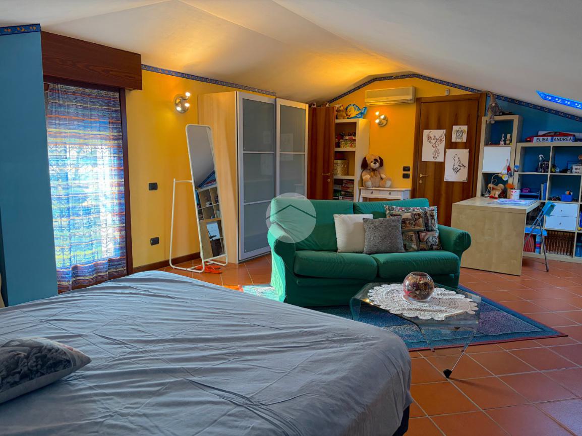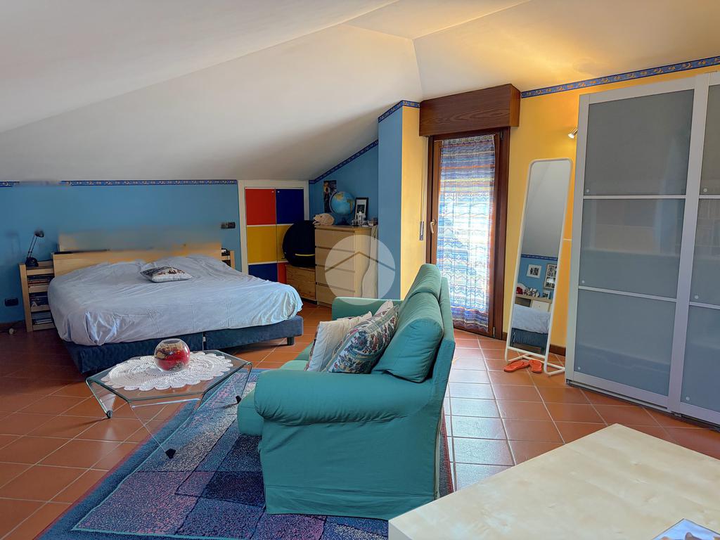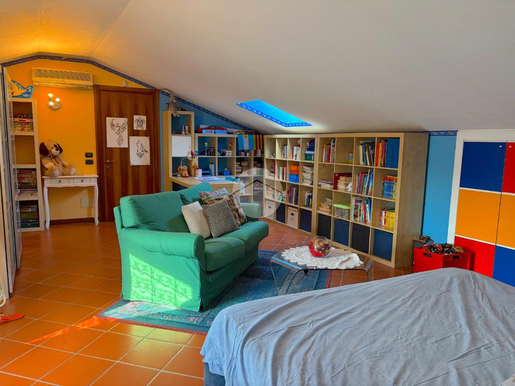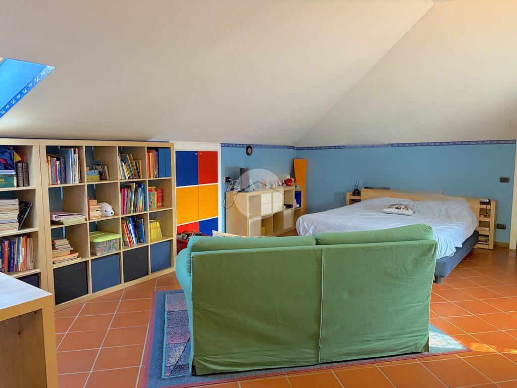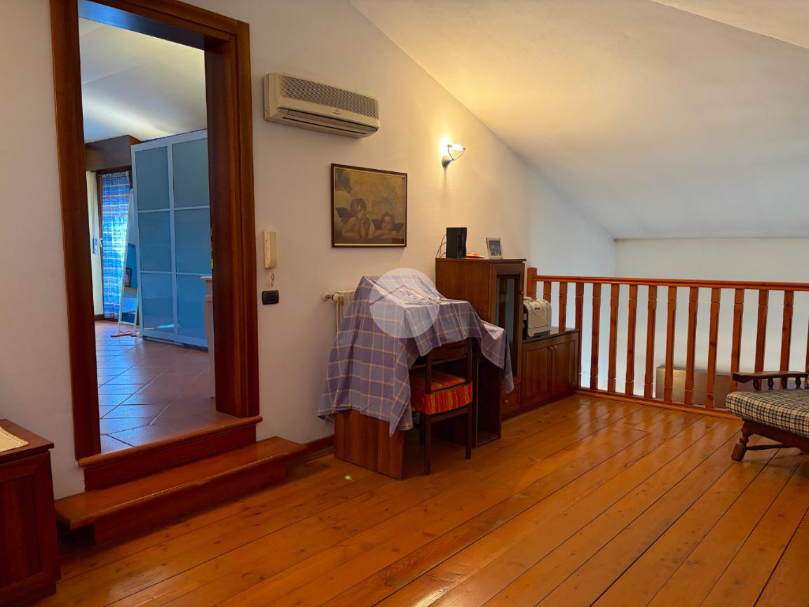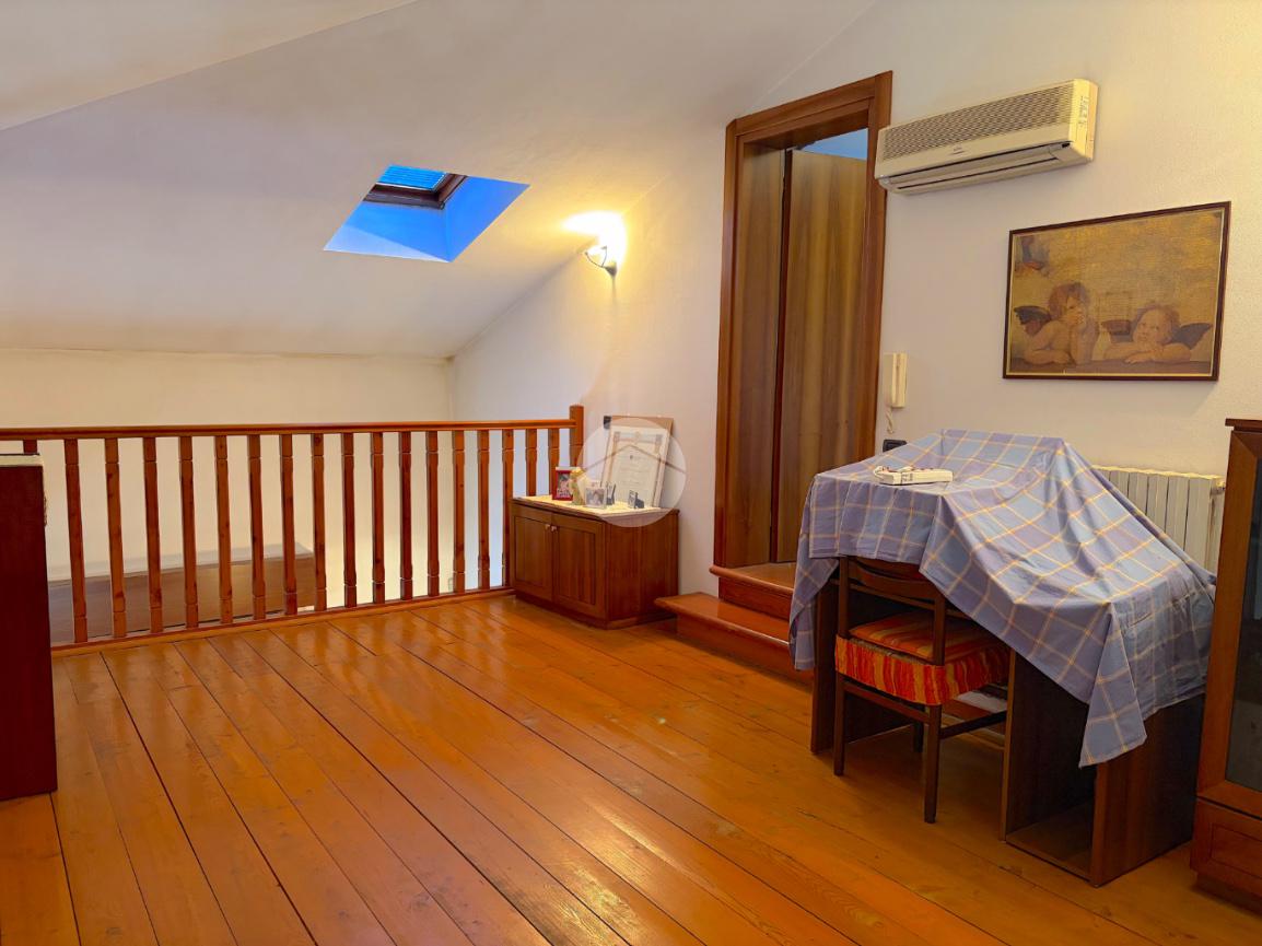 Zona Giorno: Ampia e luminosa area soggiorno-cucina con soppalco a vista, perfetta per momenti di convivialità.Zona Notte: Composta da un bagno spazioso con doccia, una camera matrimoniale di 17 mq e una camera doppia.Piano Superiore: Un soppalco versatile con piccola cabina armadio e una camera padronale di circa 25 mq con bagno finestrato e doccia.